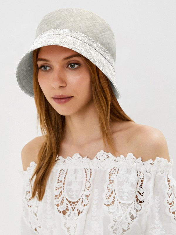 Комбинированная панама изо льна цвет бежевый-молочный-голубой Л-405